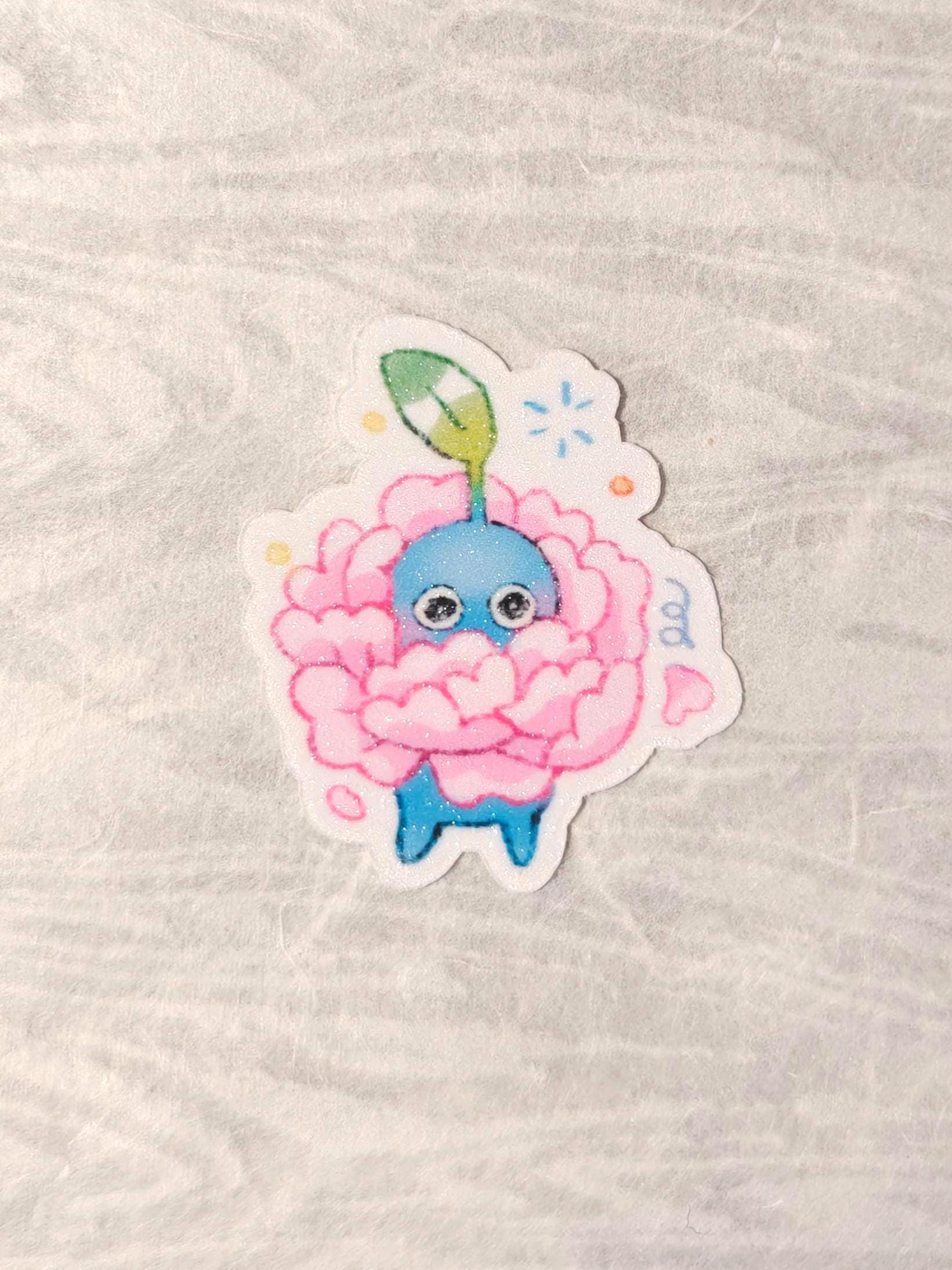 Blue Pikmin Rose Sticker: Frosted Vinyl Die-Cut