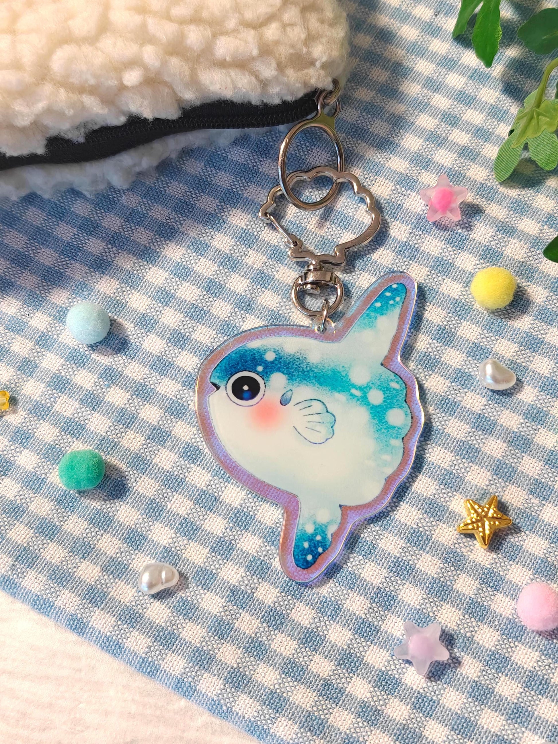 Add a splash of fun to your everyday essentials with this adorable holographic mola mola keychain! Featuring a simple hook for easy attachment, it's the perfect accessory to jazz up your bags, keys, or any item that could use a little extra charm. A playful and functional addition to your collection! ✨