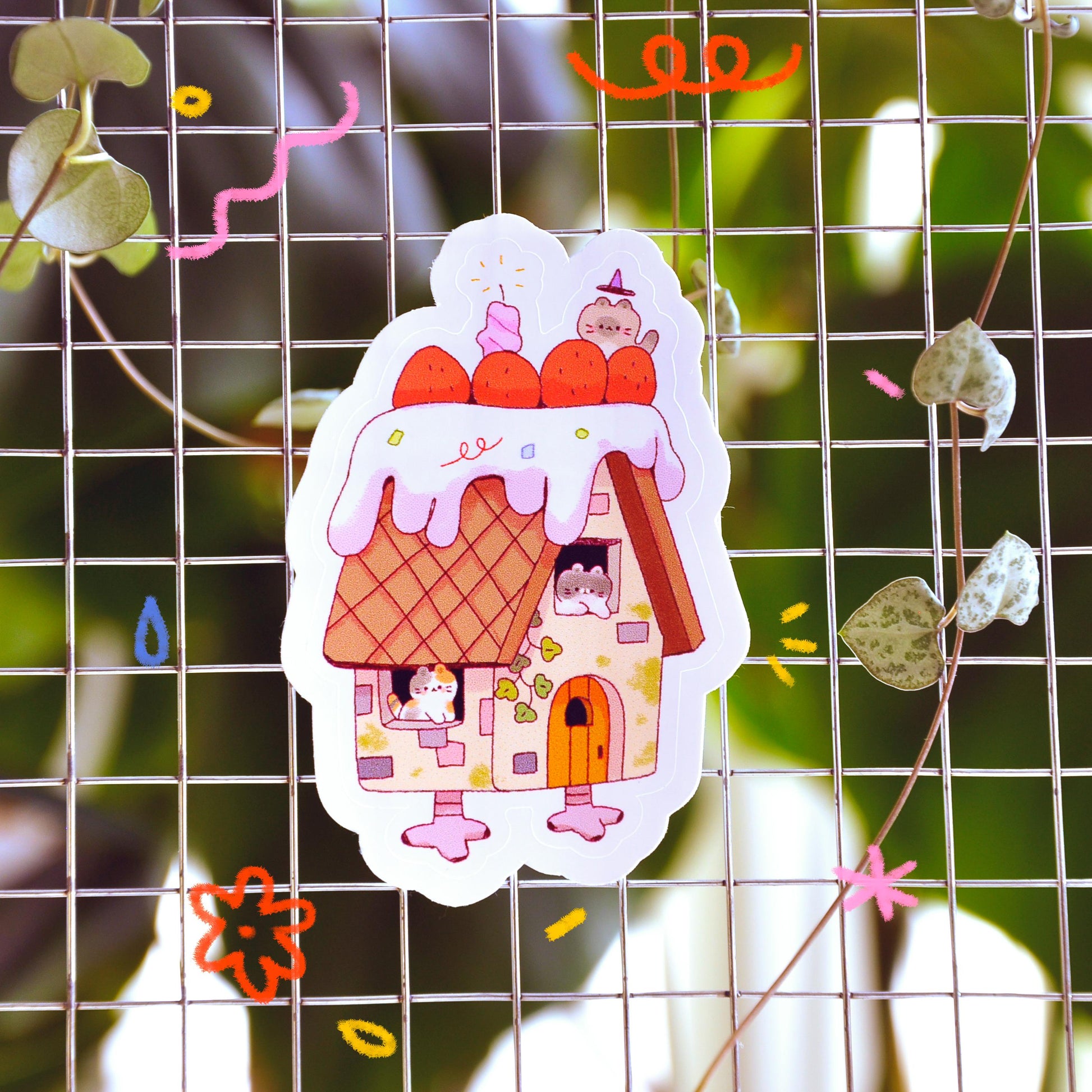 This is a die-cut paper sticker, illustrated and made in-house by me. It's waterproof and ideal for decorating hard surfaces like laptops, water bottles, and phone cases, adding a cute touch to your belongings.