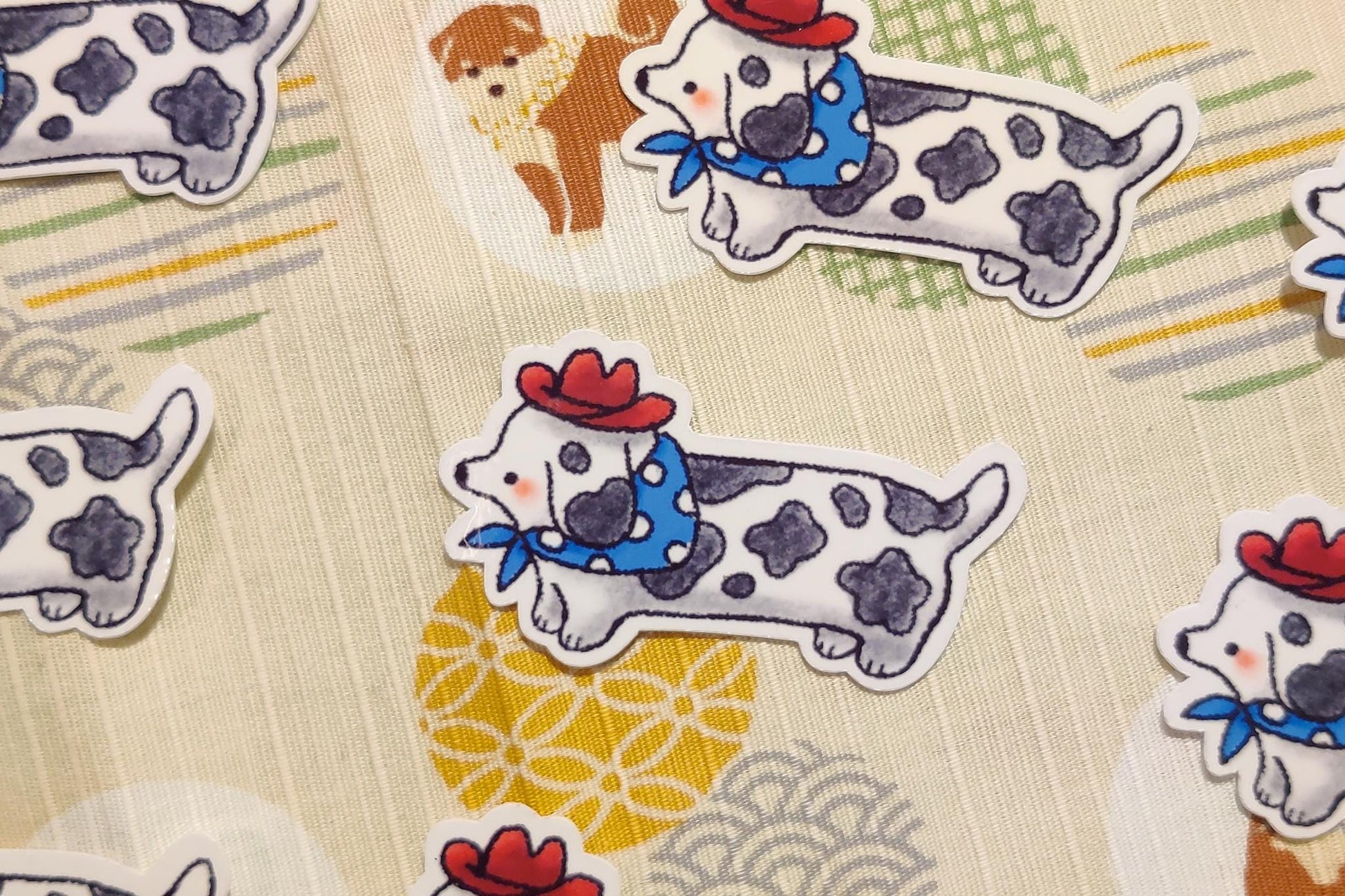 This is a glossy die-cut glossy vinyl sticker, illustrated and made in-house by me. It's waterproof and ideal for decorating hard surfaces like laptops, water bottles, and phone cases, adding a cute touch to your belongings.
