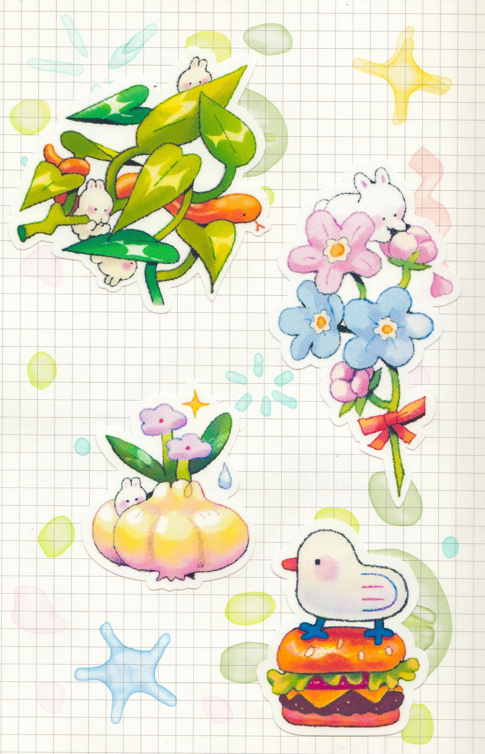 This is a die-cut glossy vinyl paper sticker, illustrated and made in-house by me. It's waterproof and ideal for decorating hard surfaces like laptops, water bottles, and phone cases, adding a cute touch to your belongings.