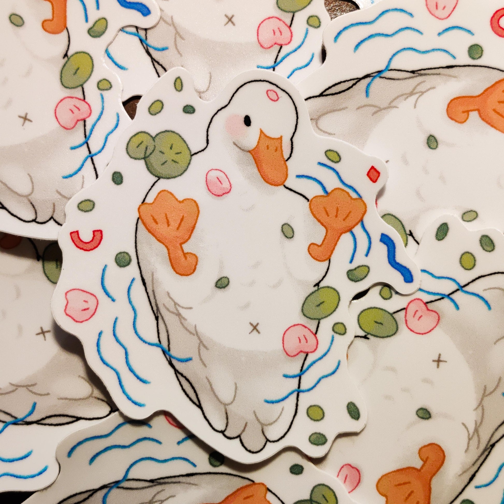 This is a glossy vinyl die-cut paper sticker, illustrated and made in-house by me. It's waterproof and ideal for decorating hard surfaces like laptops, water bottles, and phone cases, adding a cute touch to your belongings.