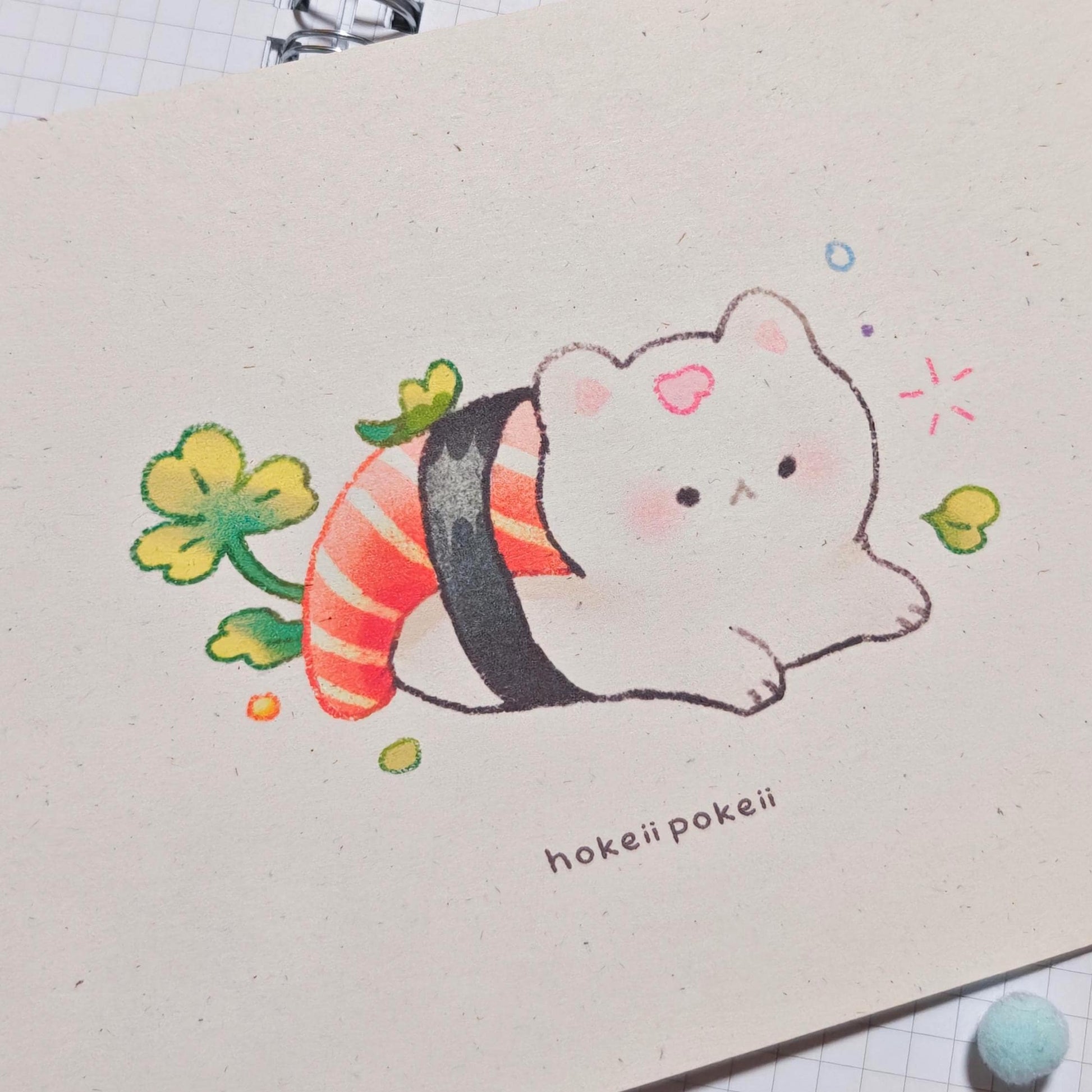 Step into a world of delightful charm with this lovely sushi cat illustration! Soft pastel hues and tiny playful details come together to create a joyous atmosphere, adding a touch of magic and happiness to your space. Each glance brings a little splash of whimsy and wonder, perfect for infusing your day with positivity and cheer.